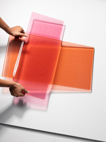 The work was commissioned following an interest in the Glass Ensemble collection and its interaction with natural light. Each element is hand-made from layered, fused glass, allowing the surface to shift in appearance throughout the day as light conditions change.