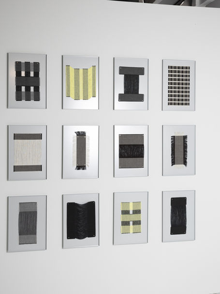By manually unravelling woven textiles, the structure of colour is revealed: threads combine into new shades. The process creates a graphic play of lines. Sometimes transparent or in motion. Sometimes strict and linear. Sometimes organically fluid.